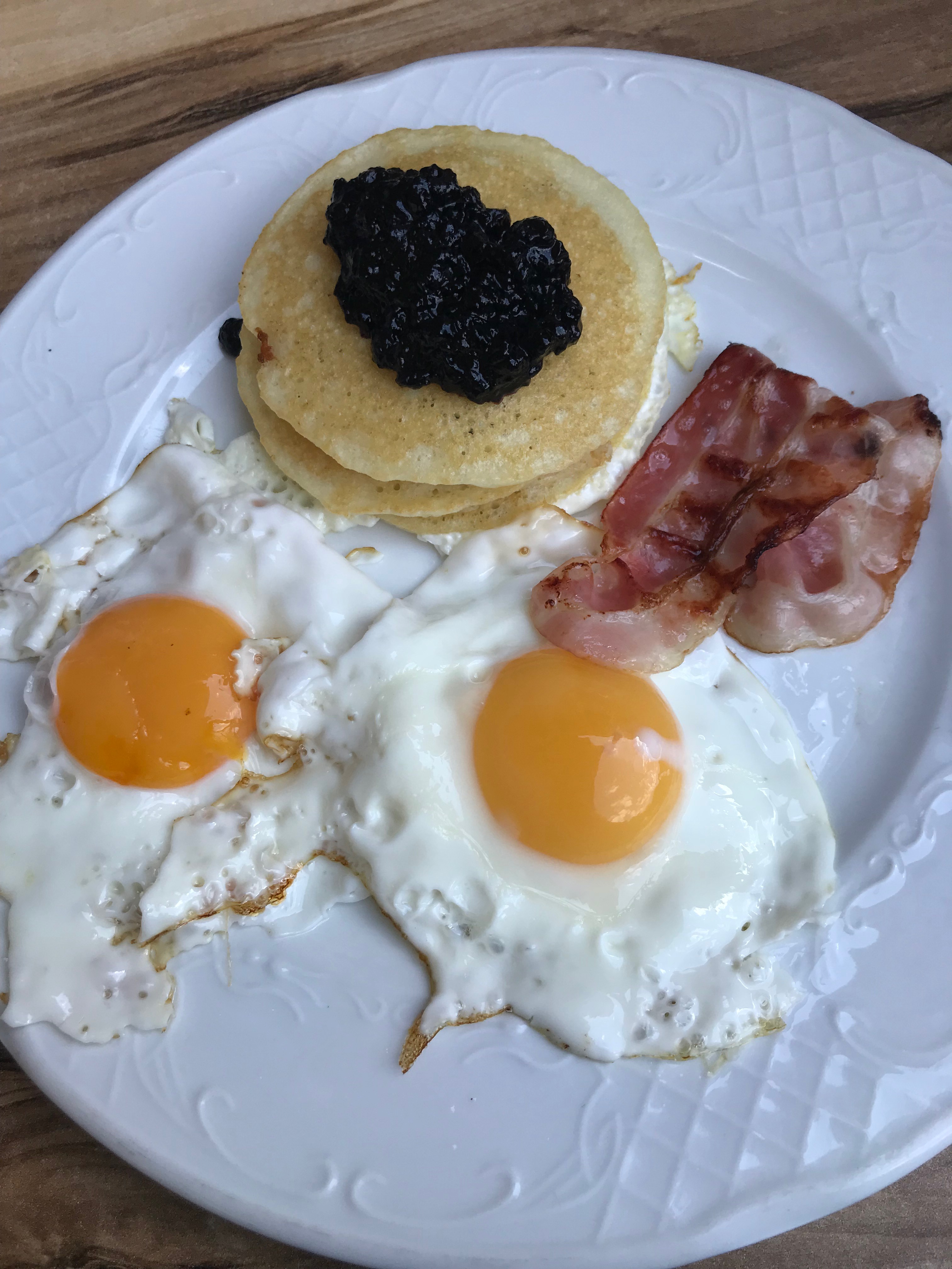 Portal de la Pau – This restaurant is much more centrally located, situated right on La Rambla, and you have a clear view of the Port Cable Car gliding above the harbor right from your table. Something else that was unique about this restaurant is that it offers both a Spanish-style breakfast and an American-style breakfast (such as the adorable tiny pancakes pictured below). However, beware that the restaurant stops serving their American menu and switches to the Spanish-style breakfast around noon.
