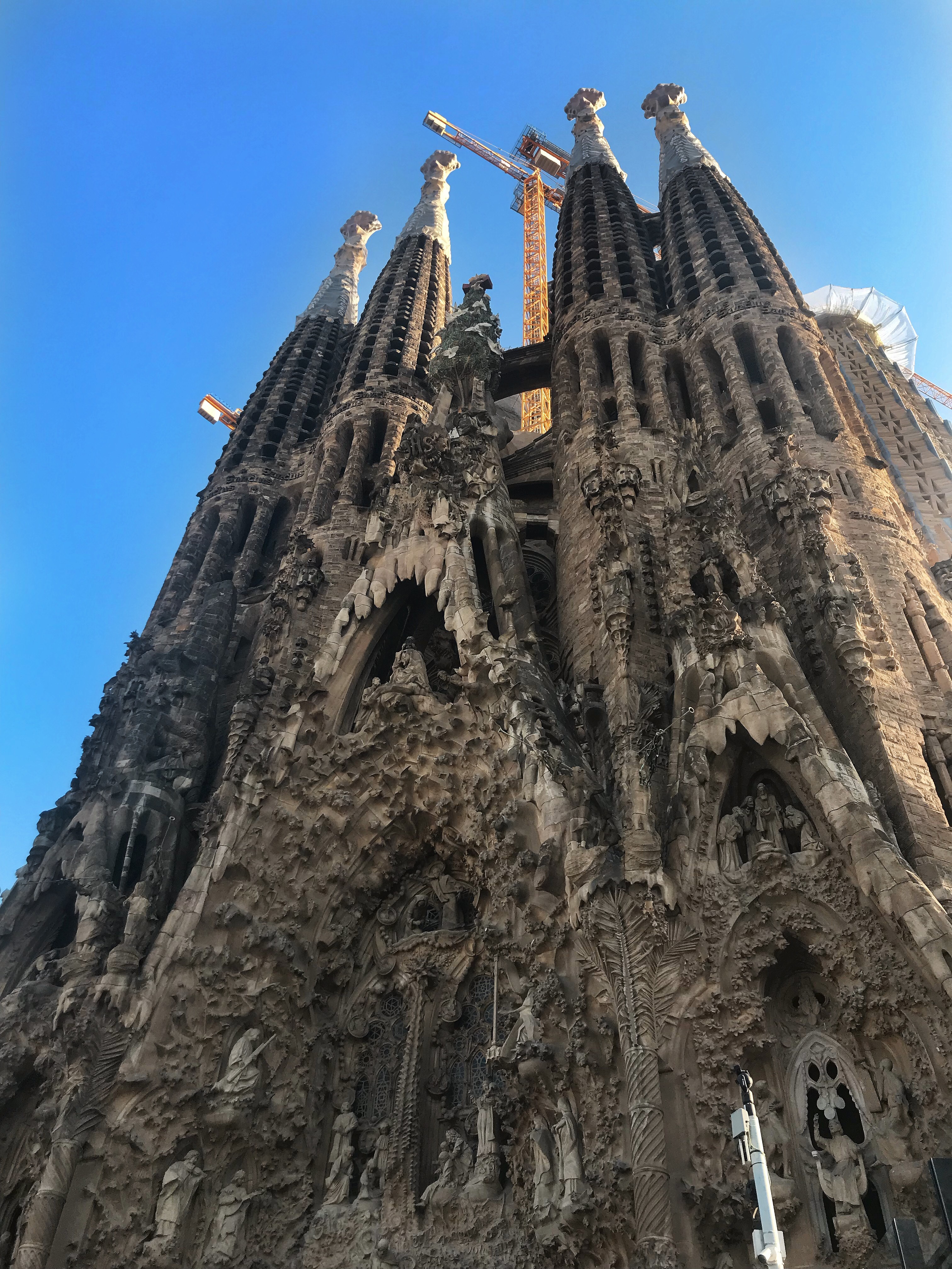 Sagrada Familia – We saw A LOT of cathedrals in Spain, but this one is unlike any other. Walking inside or outside the Sagrada Familia, your eyes never run out of details to marvel at. Like Park Guell, this cathedral was the product of Antoni Gaudí, which means color is a big part of its design. Gigantic stained glass windows wash the whole cathedral in shadows of red, green, orange, and blue. The grandiose of the space is topped off with thick columns that lead your eyes up dozens of feet to the clustered domed ceiling. What’s even crazier? Cranes peak through the already imposing outer facade where the structure is continuing to expand.