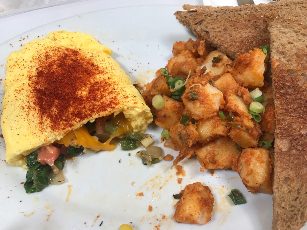 cheddar omelette with sauce piquant. The combination of the fresh, zingy jam matched with the warm, fluffy beignets was an unforgettable meal. Since then, I have tasted fresh beignets from Cafe Du Monde in New Orleans, but Brenda’s beignets still remain an extremely close second.